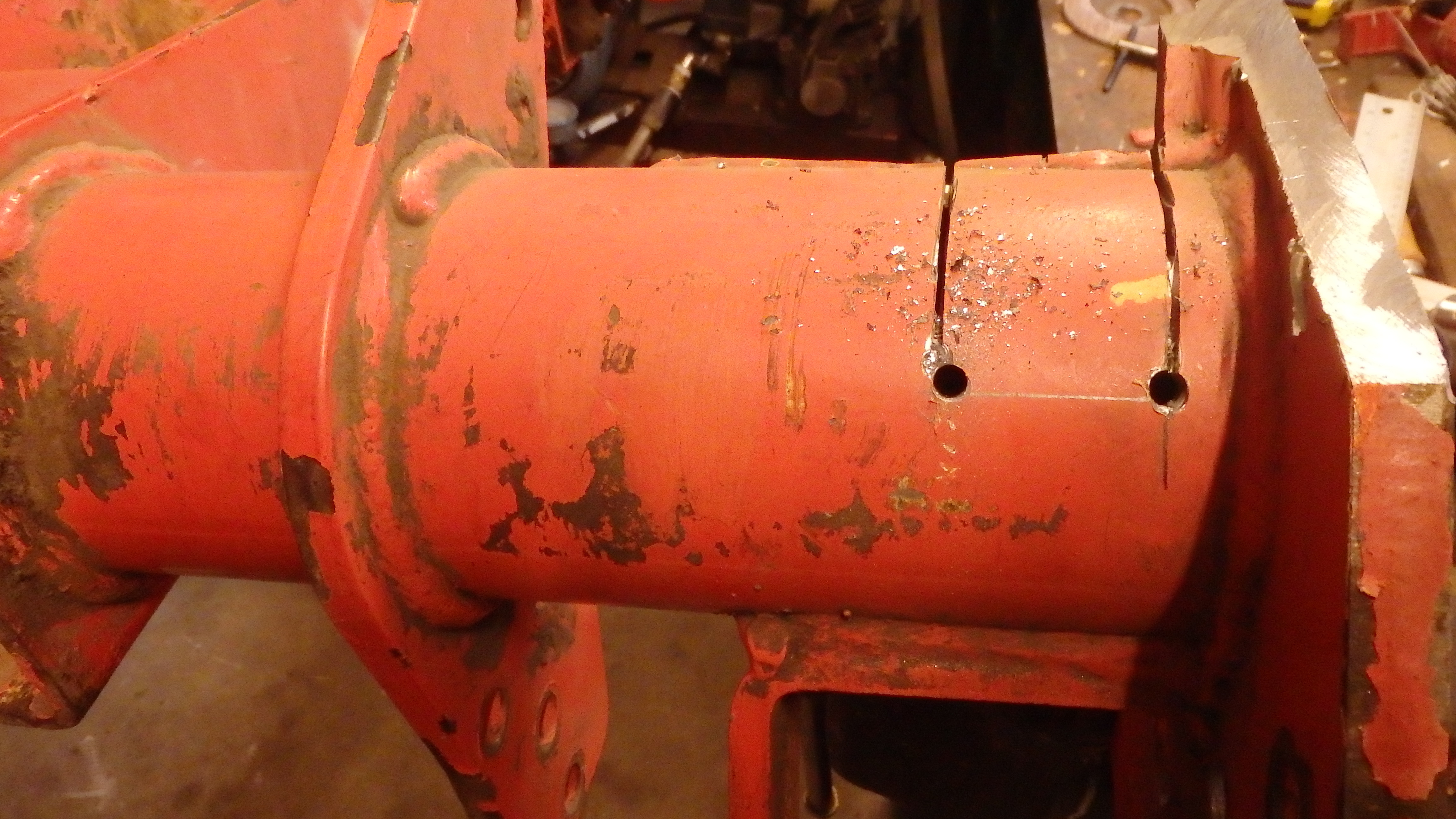 W praktyce wyglądało to tak ,że zamocowało sie obie wieżyczki do korpusu obudowy sprzęgła w miejscah do tego fabrycznie przeznaczonych, stosujac po jednej śrubie na stronę. Następnie osadziło sie w wieżyczkach ramiona ładowacza. A następnie przy pomocy bloczka - ładowacz został podniesiony na max wysokość i opuszczony 15cm poniżej pow gruntu. Kolejny raz kontrola czy koła nie obcierają wieżyczek nawet w skrajnym wy krzyżu potwierdziła poprawność obrania miejsc mocowania gniazd do korpusu.